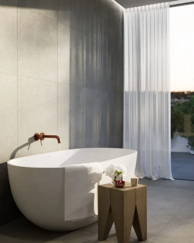 Interiors reflect a warm, tactile palette, with residences offered in two refined themes—‘Autumn’ and ‘Spring’—featuring a curated selection of metallic finishes in antique brass or rose gold, European oak flooring, wool carpets, and opulent natural stone. The design fosters a cohesive, calming environment that balances contemporary sophistication with everyday functionality.