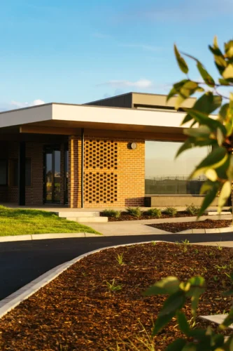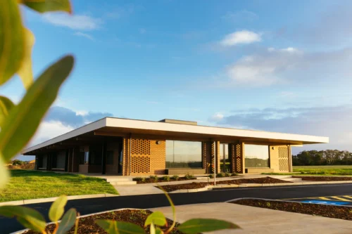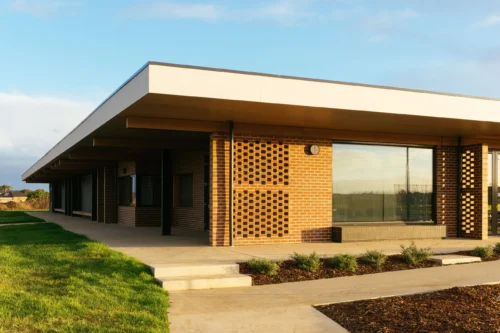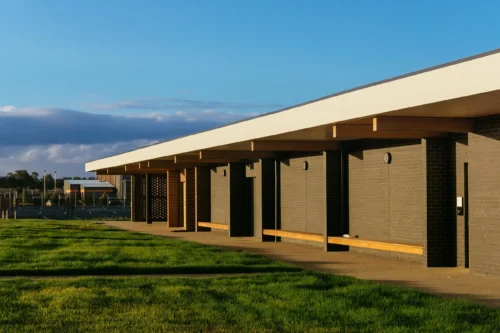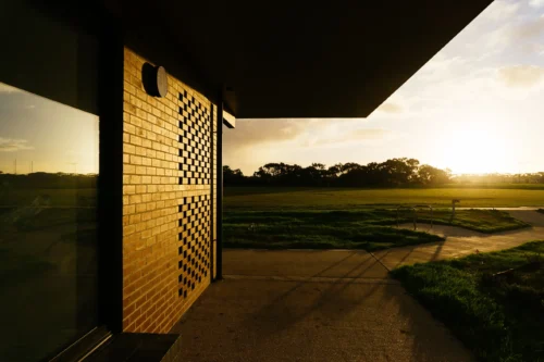 The Armstrong Creek Sports Pavilion, now home to the Armstrong Creek Sharks Football Netball Club, was designed as a hub for the local community, supporting the formation of new Australian Rules football, netball, cricket and soccer clubs. Generous change rooms accommodate both home and away teams, supported by umpires’ rooms and administration facilities. A large multi-purpose room with commercial kitchen and bar offers social and fundraising opportunities for the clubs. Alongside a series of meeting rooms, these facilities are also available for hire by the general public, further reinforcing links to the community.