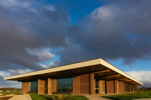 The monolithic form necessitated by the hub’s functionality was broken down through the use of hit-and-miss brickwork, large sections of glazing and exposing of key structural elements, inviting local residents to engage whilst offering sightlines across the surrounding playing fields. This is reinforced by the use of colour, delineating spaces open to the public from those servicing the clubs.