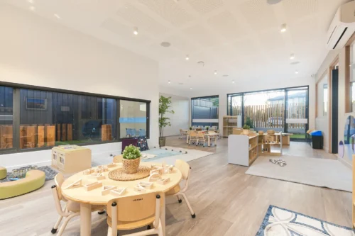 The centre features spacious playrooms with direct connections to the external play spaces for seamless internal and external play, allowing for engagement and inspiration for the children to learn through adventurous and imaginative play all day.