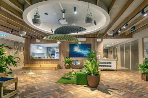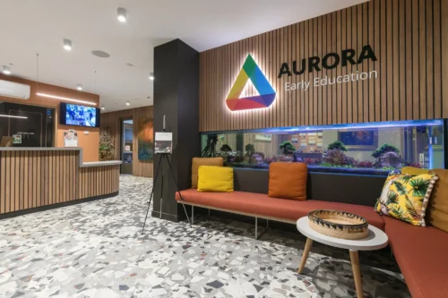 Aurora Early Education Doncaster is a purpose built centre that offers 116 place early education from 0-6 years of age. The design is based on the 5 elements of nature of earth, water, fire, air, and space. The light and airy centre supports children to feel safe yet challenged while learning, and is also a place for families and staff to connect. The beautiful interiors are rich in natural and sensory elements including woven materials, plants and timber.
