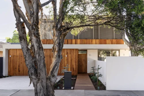 A two-storey family home defined by material restraint, natural light and thoughtful planning. Designed by Perkins Architects and built by Journey, the home balances a confident architectural form with warm, liveable interiors. Clean lines and a controlled palette create a sense of calm, while subtle textures and natural finishes add depth and softness.