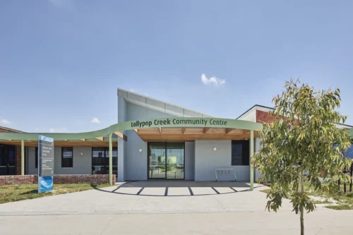 Named after the nearby Lollypop Creek, this new purpose-built community hub serves the rapidly growing suburbs within the City of Wyndham, supporting early learning, health services, and community programs.