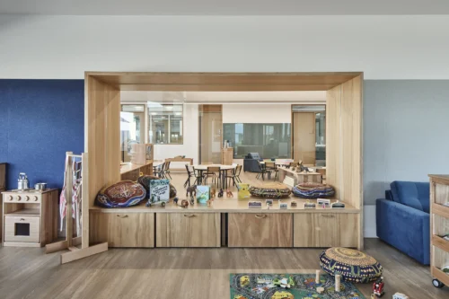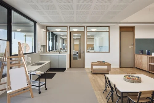 Beyond early education, the centre offers a range of community-focused amenities, including allied health consulting rooms, two large multi-purpose community rooms, a community kitchen, meeting rooms, and ancillary facilities for both staff and visitors. The community rooms are designed to support a variety of uses and have direct access to separate fenced outdoor gathering areas, providing flexibility for different events and programs.