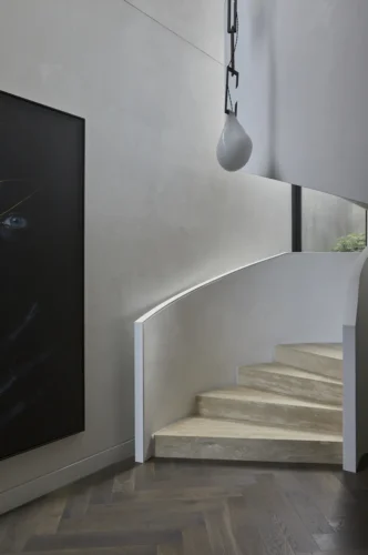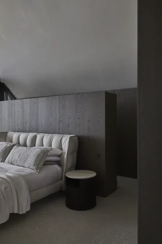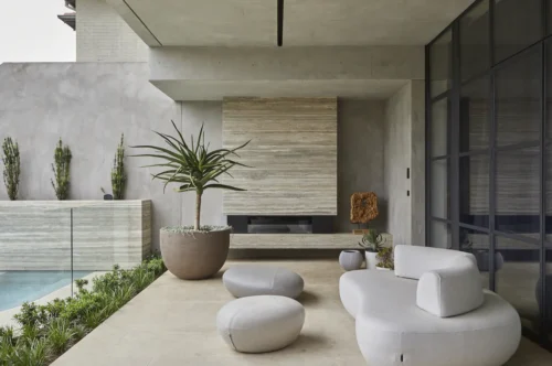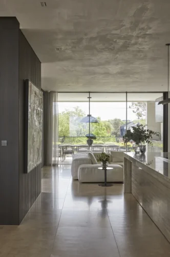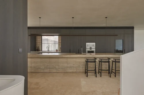 Externally, the home is defined by its robust materiality—off-form concrete panels are paired with charred timber cladding to create a striking façade. Internally, the palette is restrained and elegant, featuring hard plaster walls, marble-lined bathrooms, and a mix of hardwood and tiled flooring throughout.