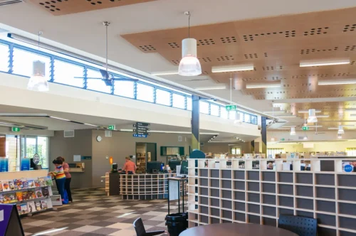 Built on a greenfield site, the Pakenham Library was designed as a comprehensive, integrated community hub to bring together essential services and facilities in one location. Adjacent to the PB Ronald Reserve and war memorial, this landmark building is readily accessible and highly visible to the wider community.