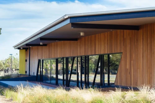 The low lying profile of this centre offers expansive views over the surrounding green spaces, with native grasses offering buffers to outdoor seating areas and pathways. Large areas of glazing, buffered by screening, offer ample natural light and ventilation to the centre. A Discover Garden reinforces learning as an outdoor classroom, whilst also offering a tranquil retreat for the community.
