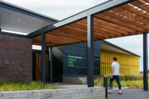 This community hub unites learners of all ages through a modern library, a community hall and a University of the Third Age (U3A) centre. These spaces are supported by a series of meeting rooms, and spaces for events and programs run by the Cardinia Shire Council. A central spine aids wayfinding, for ease of use by all.